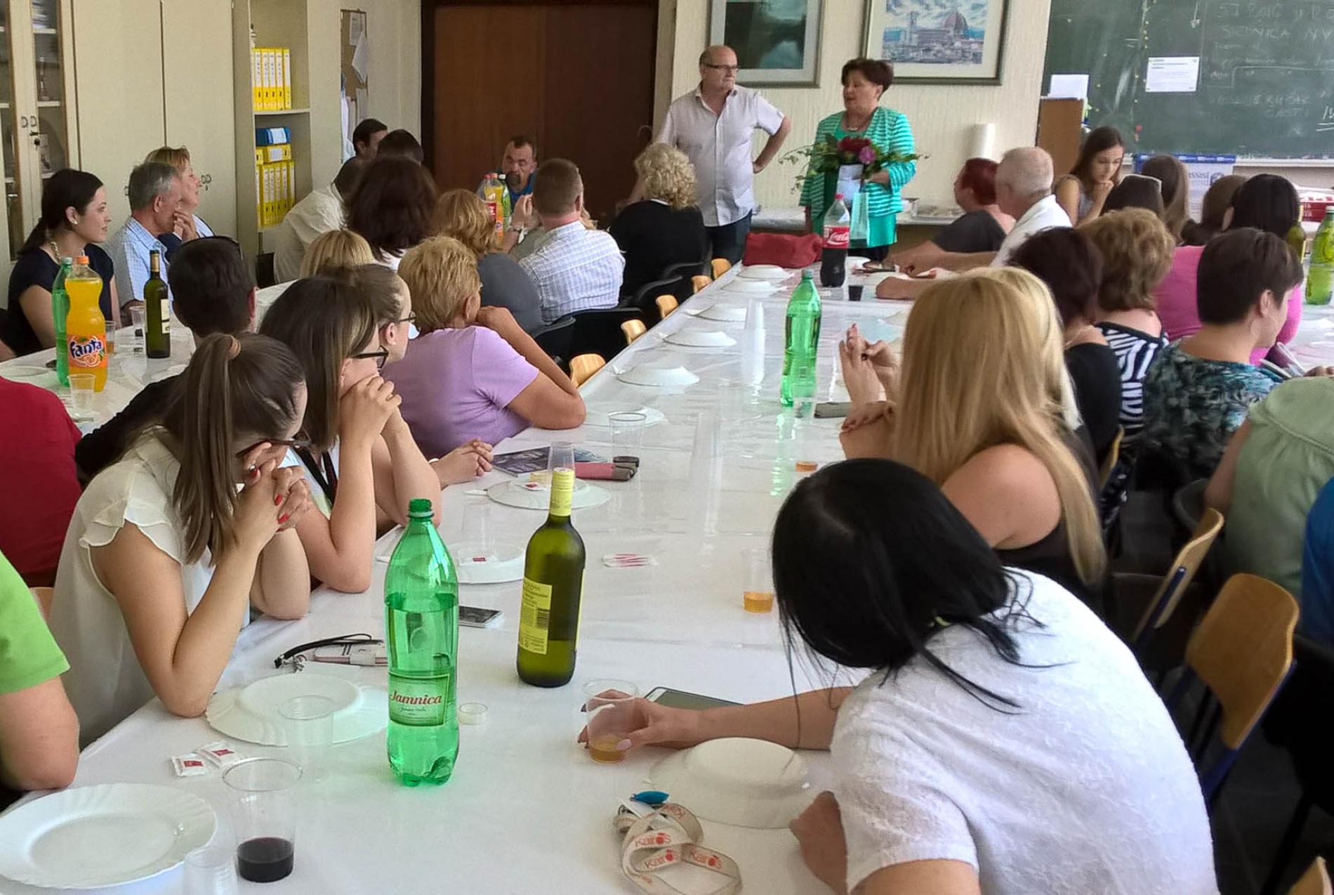 Zadnji skup djelatnika škole prije odlaska na godišnje odmore... Povodom odlaska u mirovinu profesorica Ivka Šulentić je priredila domjenak na kojem smo kolegici imali priliku izraziti zahvalu za dugogodišnji rad...