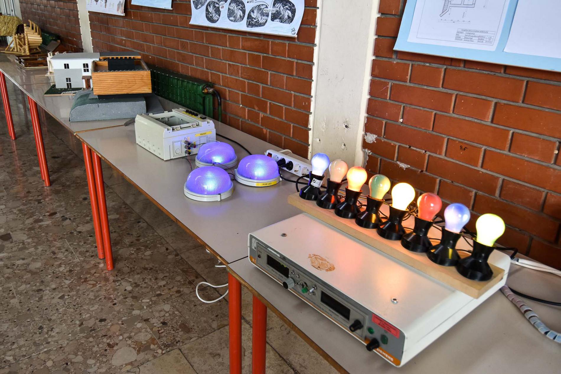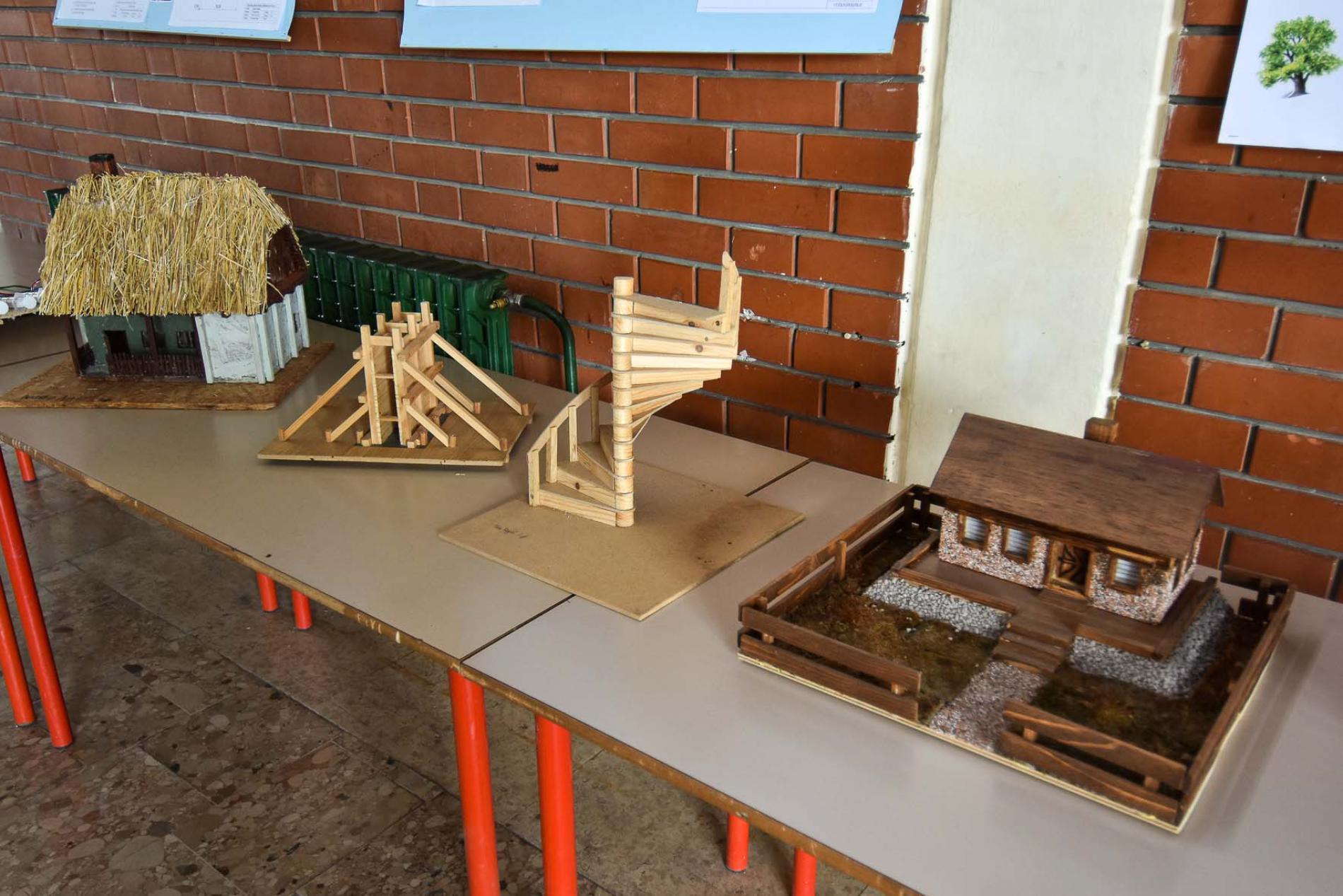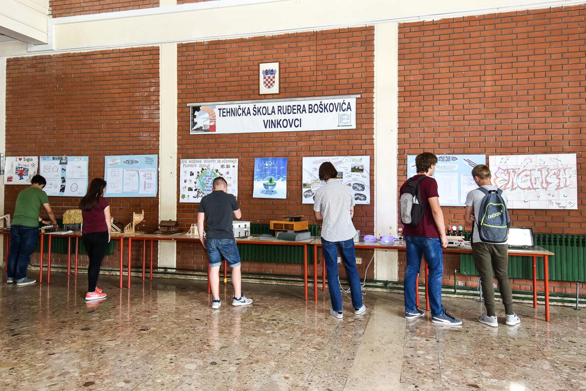 U prostorijama škole su prikazane makete, panoi, plakati, crteži, nacrti,...